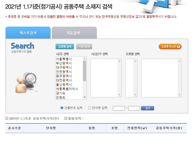 4. 주소지를 입력해주시면 하단에 공동주택가격을 확인할 수 있습니다.