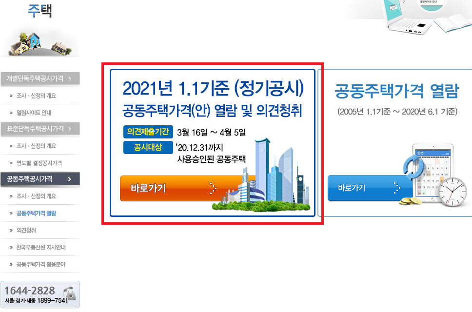 3. [2021년 공동주택가격 열람] 바로가기를 눌러주세요.