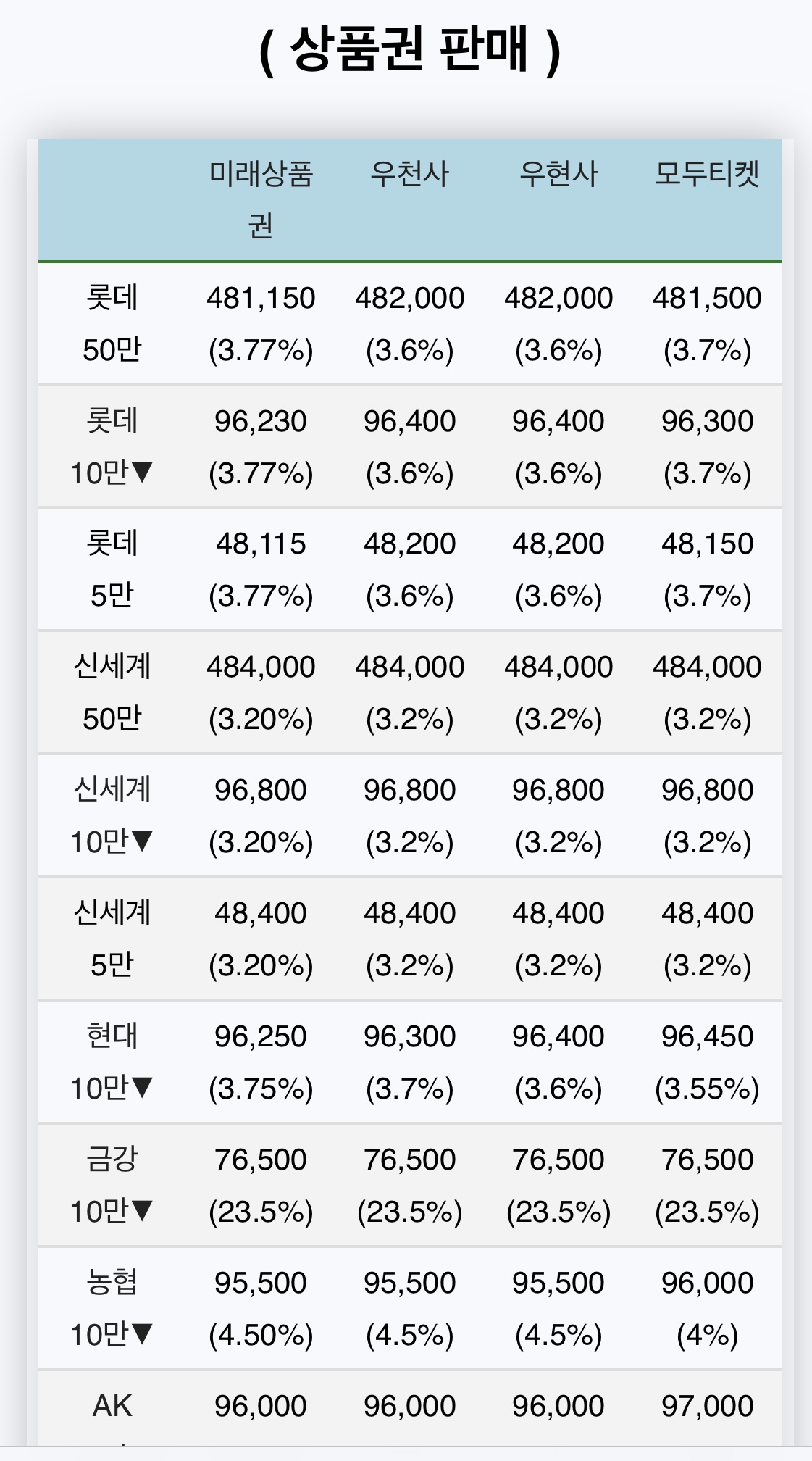▶ 상품권 시세 - 💰 재테크 한방에